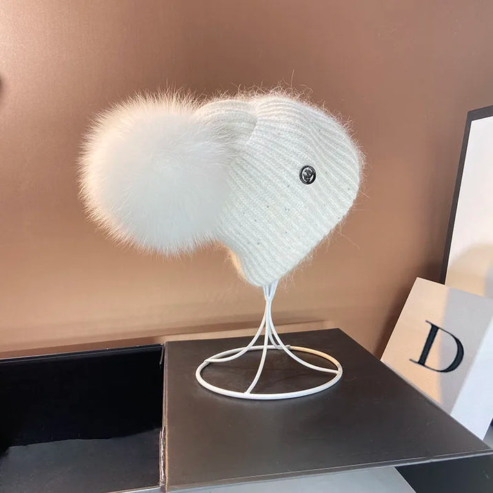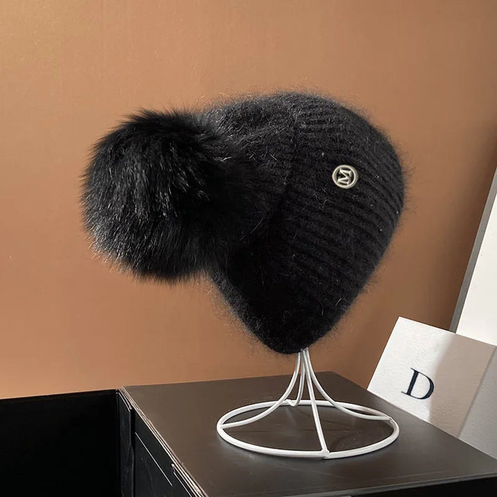 POMPOM - Lyxig vintermössa i äkta rävpäls